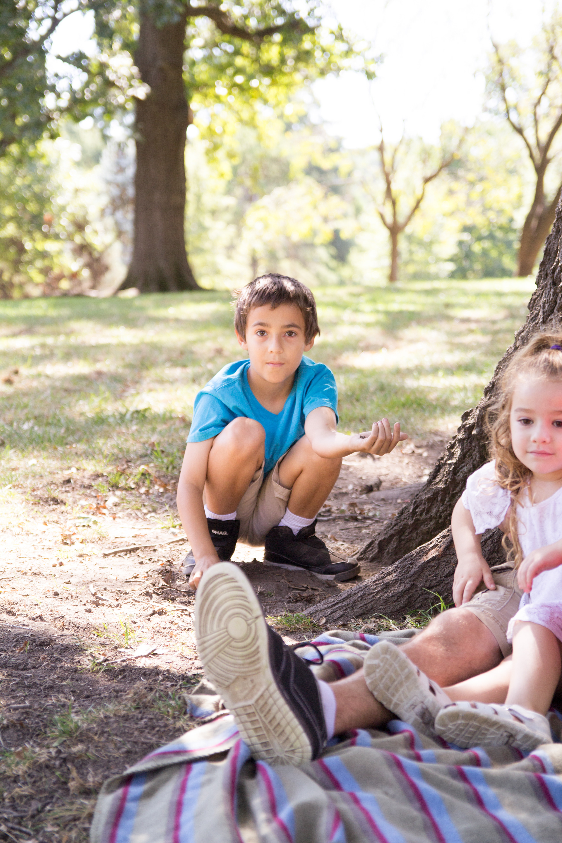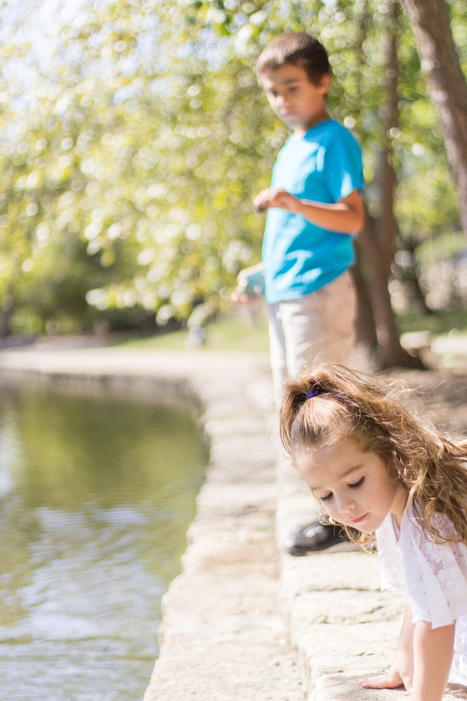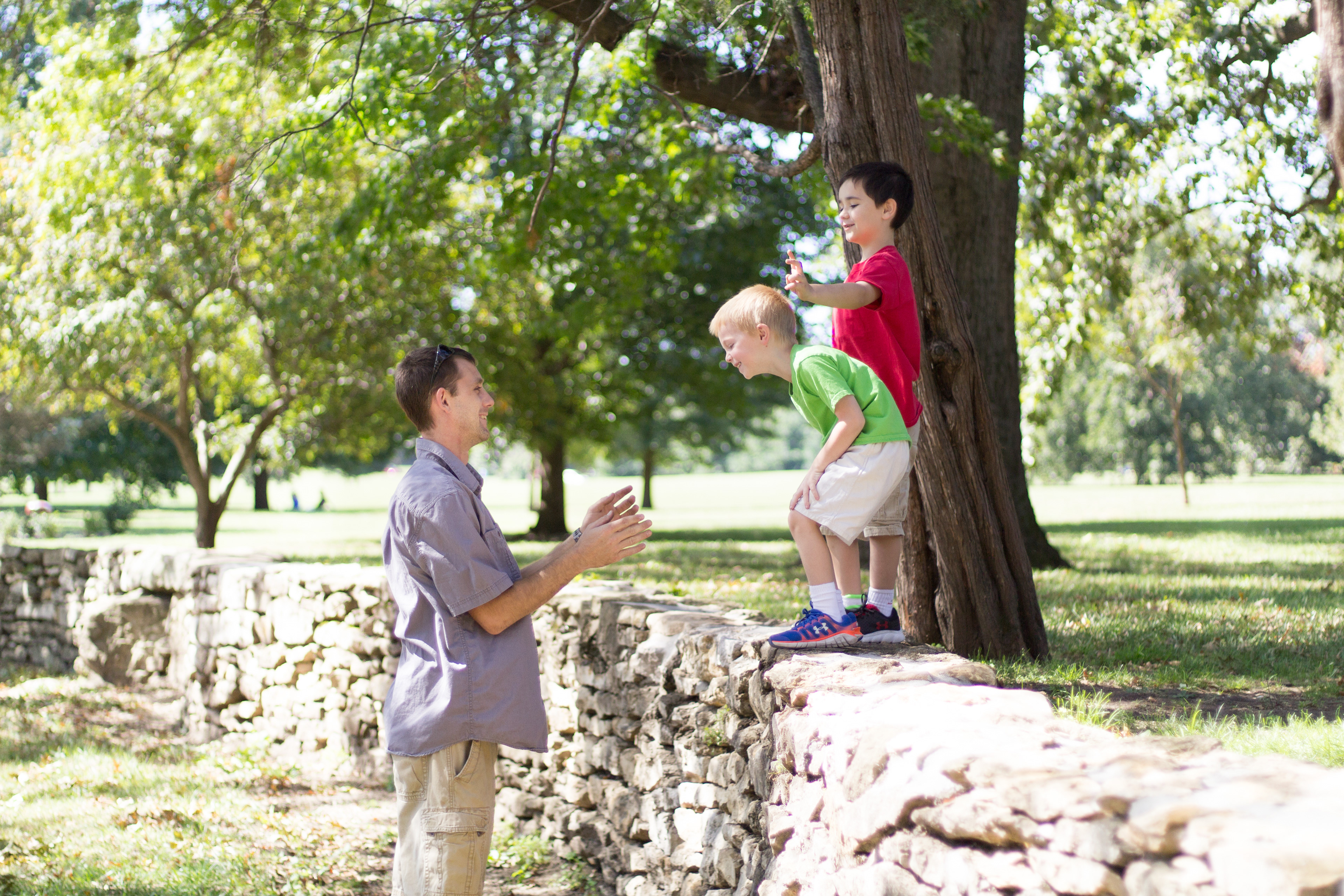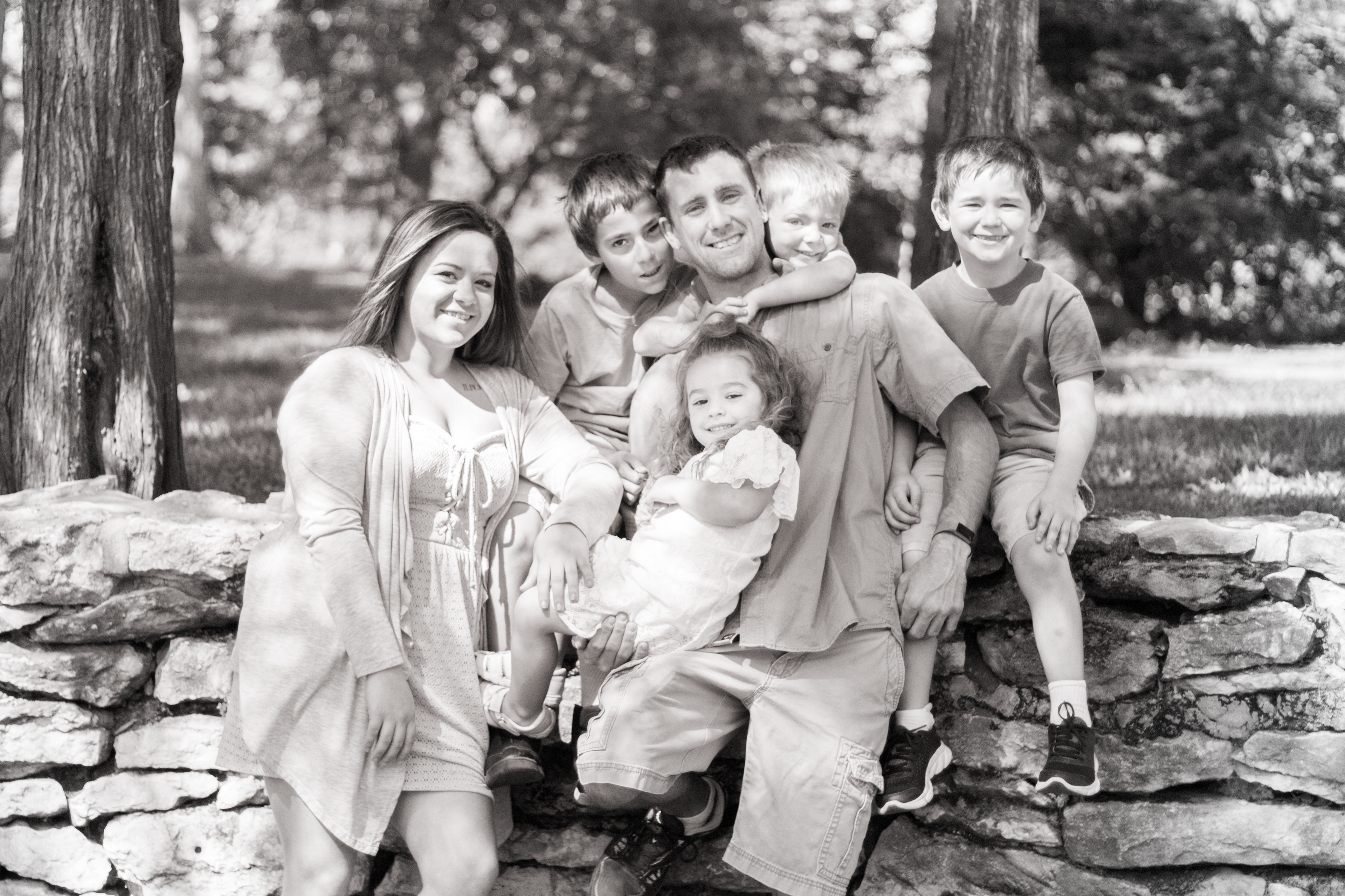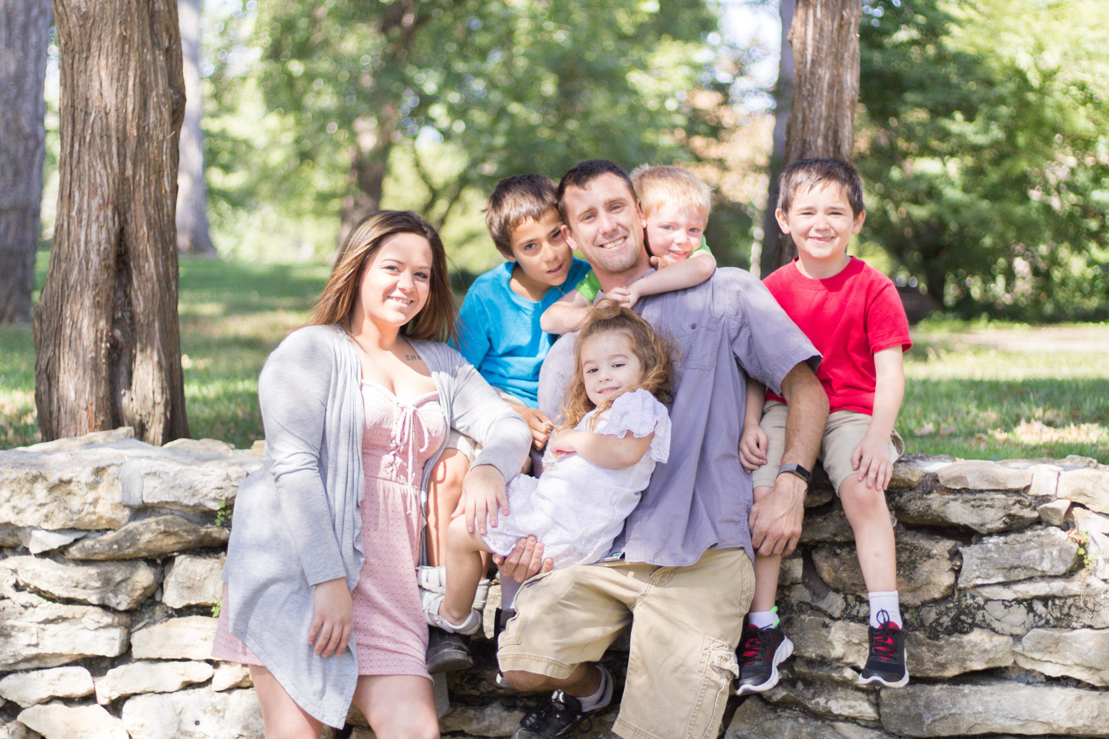 It was a lovely day at Loose Park in Kansas City. I met up with Kristuana, Kyle and their four beautiful children a little after noon. The kids loved tossing rocks into the pond and just having a little down time to play before we got busy taking group photos. Each of the boys took turns jumping off the rock wall to their Dad, making for some cool action shots. Kristiauna's daughter, Cicily, was more than a natural in front of the lens. She posed without any hesitation and made my job a breeze! She was so cute and asked to take my picture multiple times. At the end of the shoot, I let her take a couple pictures with my camera.