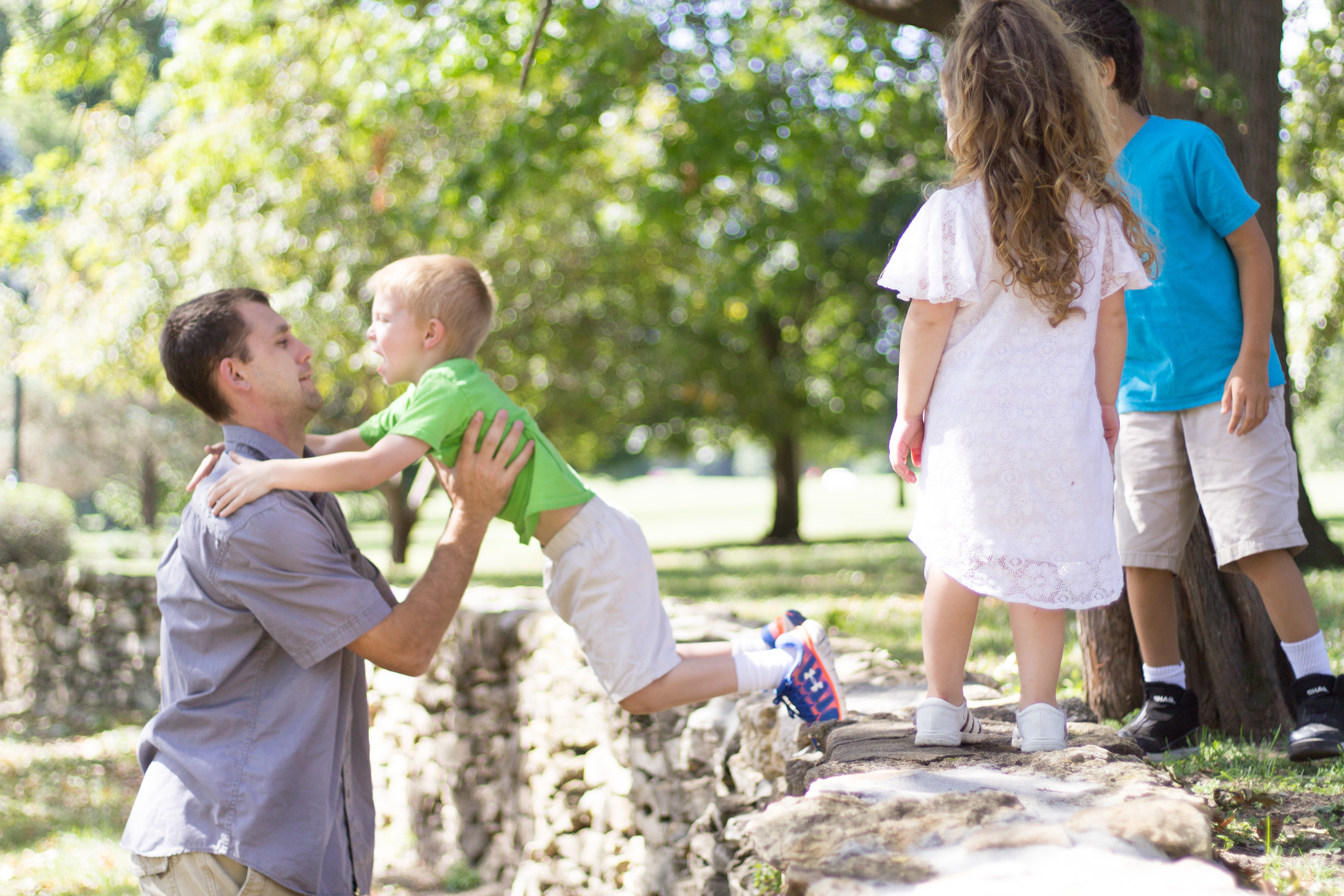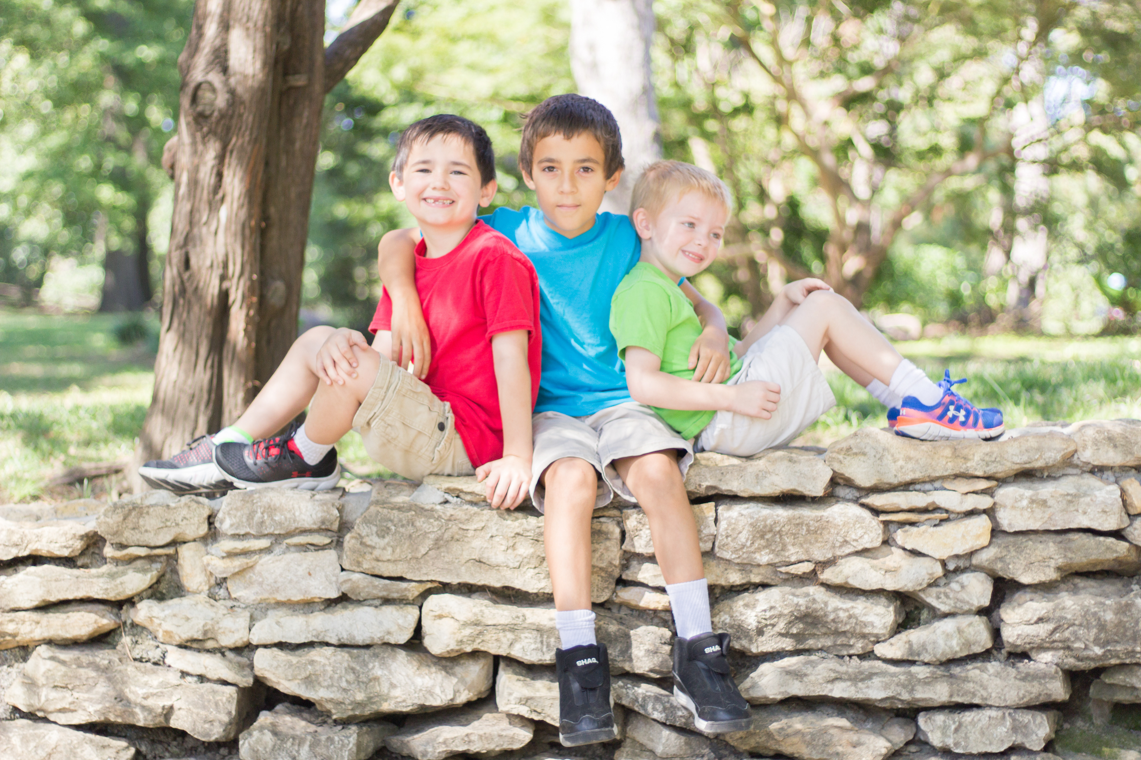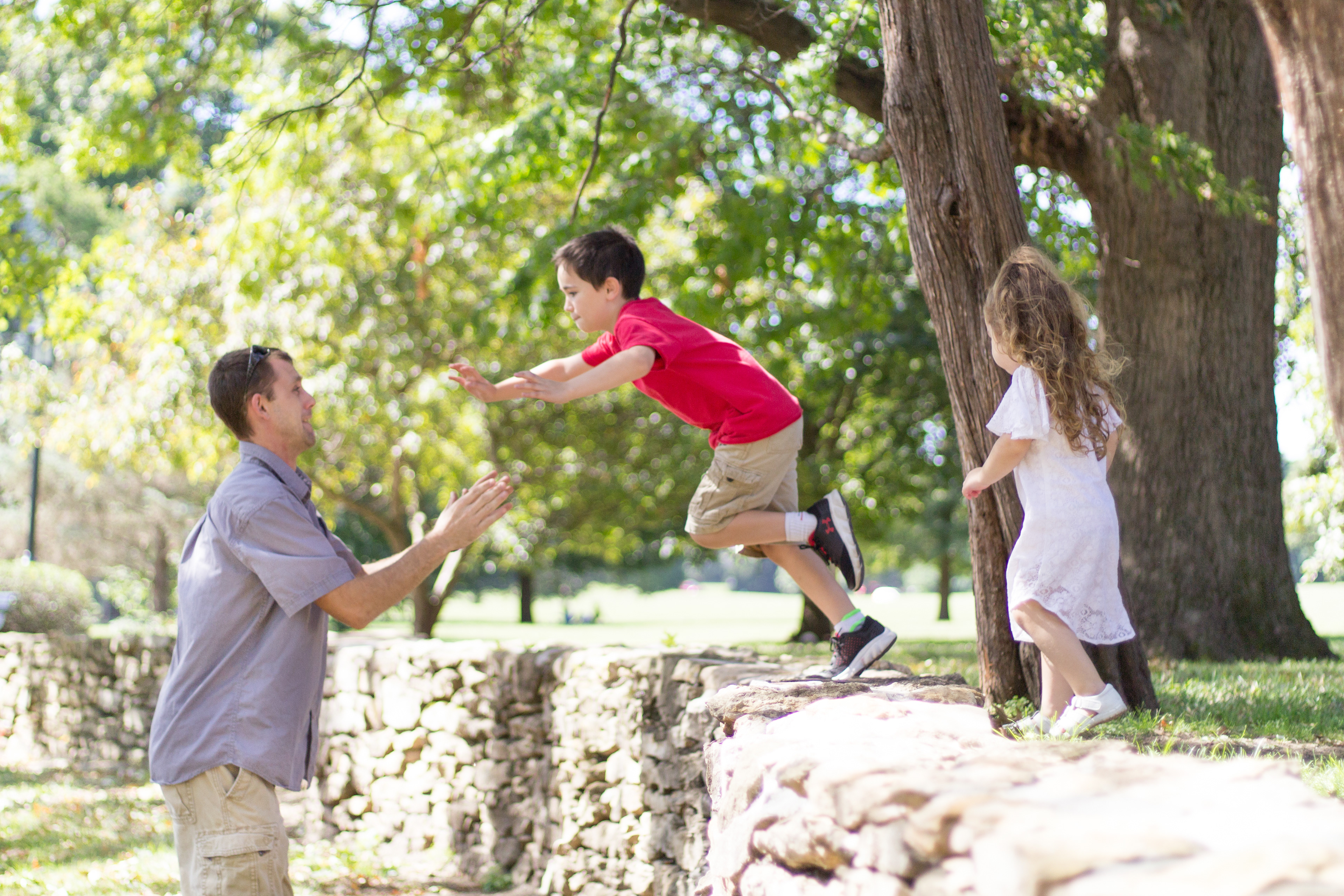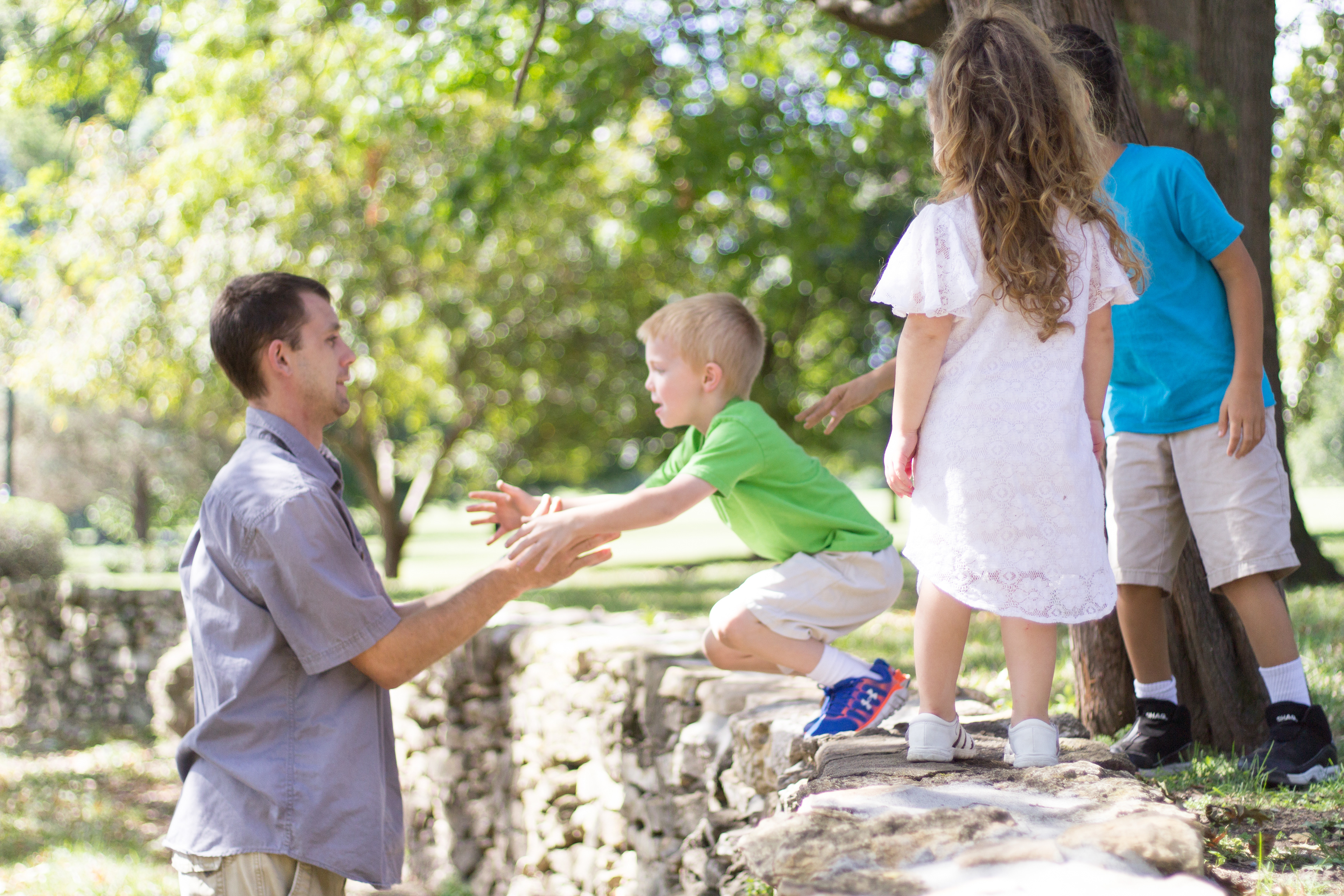 It was a lovely day at Loose Park in Kansas City. I met up with Kristuana, Kyle and their four beautiful children a little after noon. The kids loved tossing rocks into the pond and just having a little down time to play before we got busy taking group photos. Each of the boys took turns jumping off the rock wall to their Dad, making for some cool action shots. Kristiauna's daughter, Cicily, was more than a natural in front of the lens. She posed without any hesitation and made my job a breeze! She was so cute and asked to take my picture multiple times. At the end of the shoot, I let her take a couple pictures with my camera.