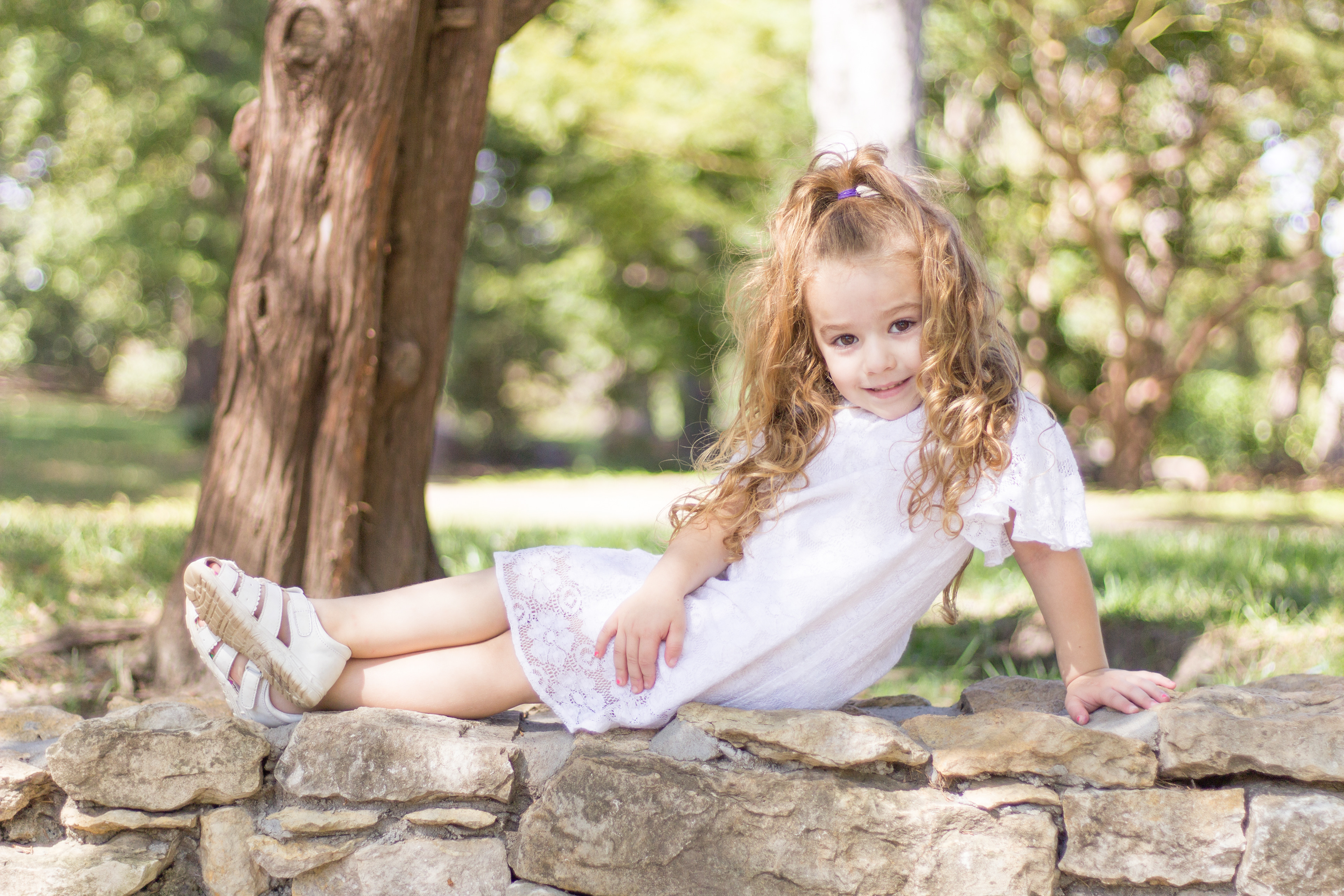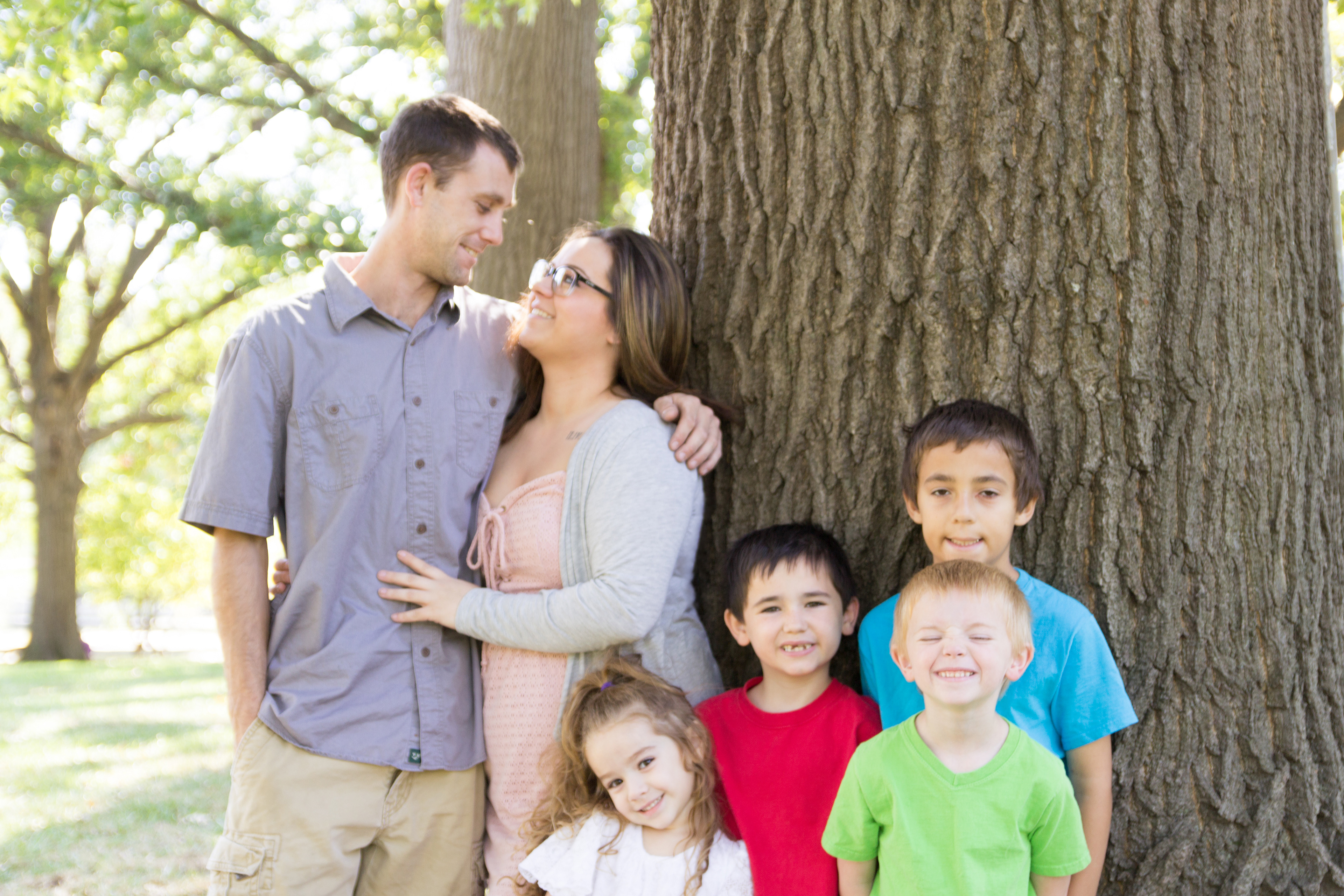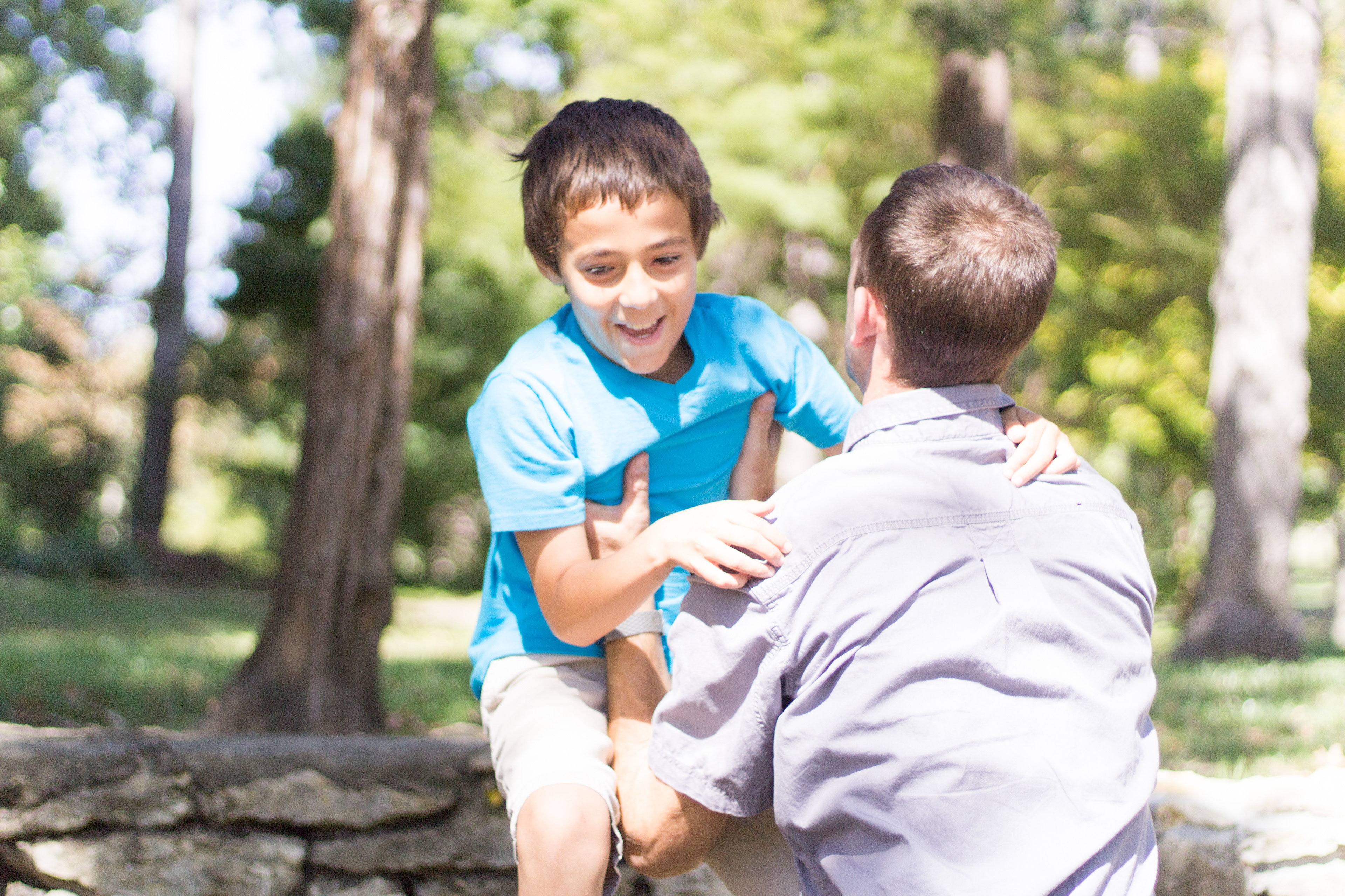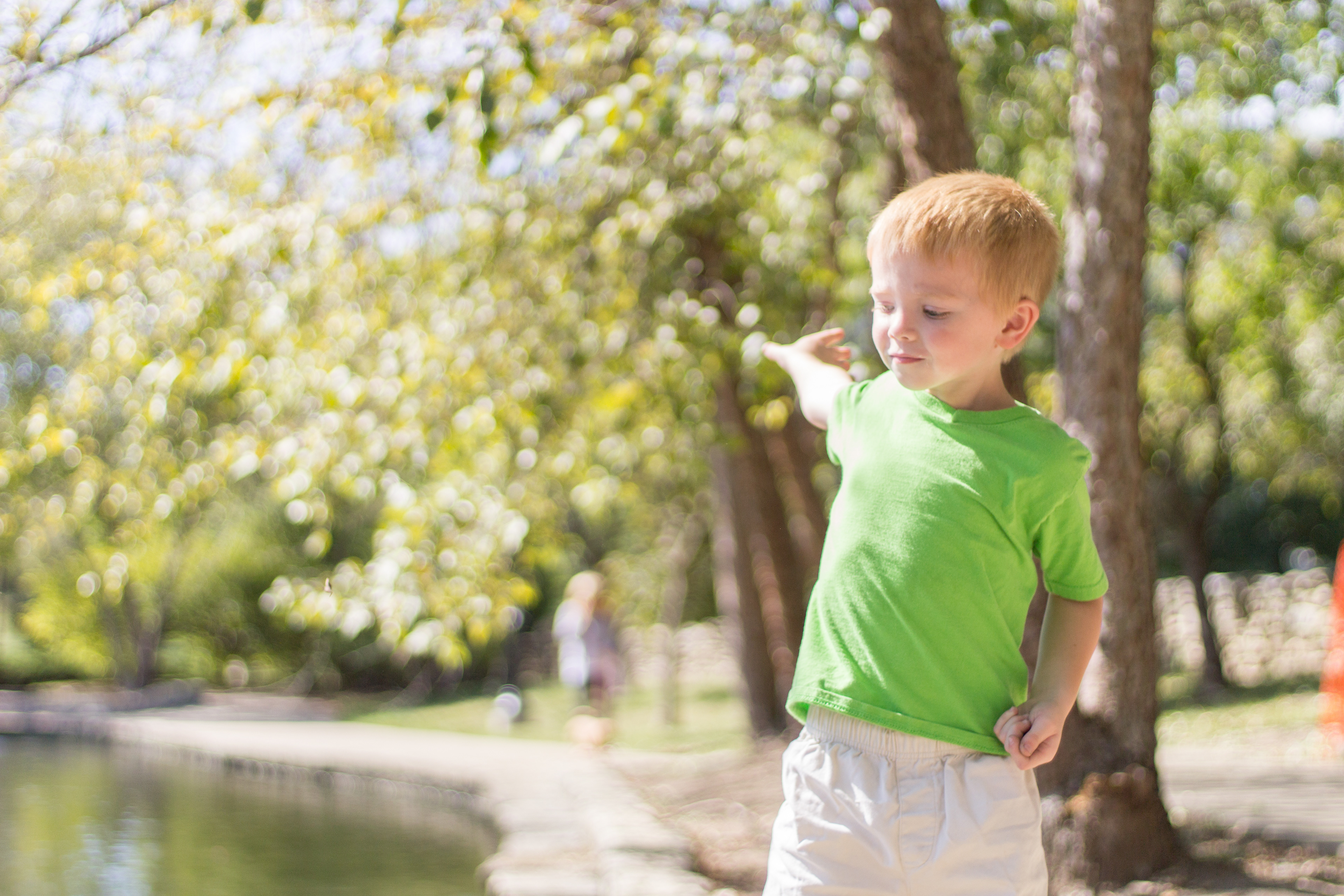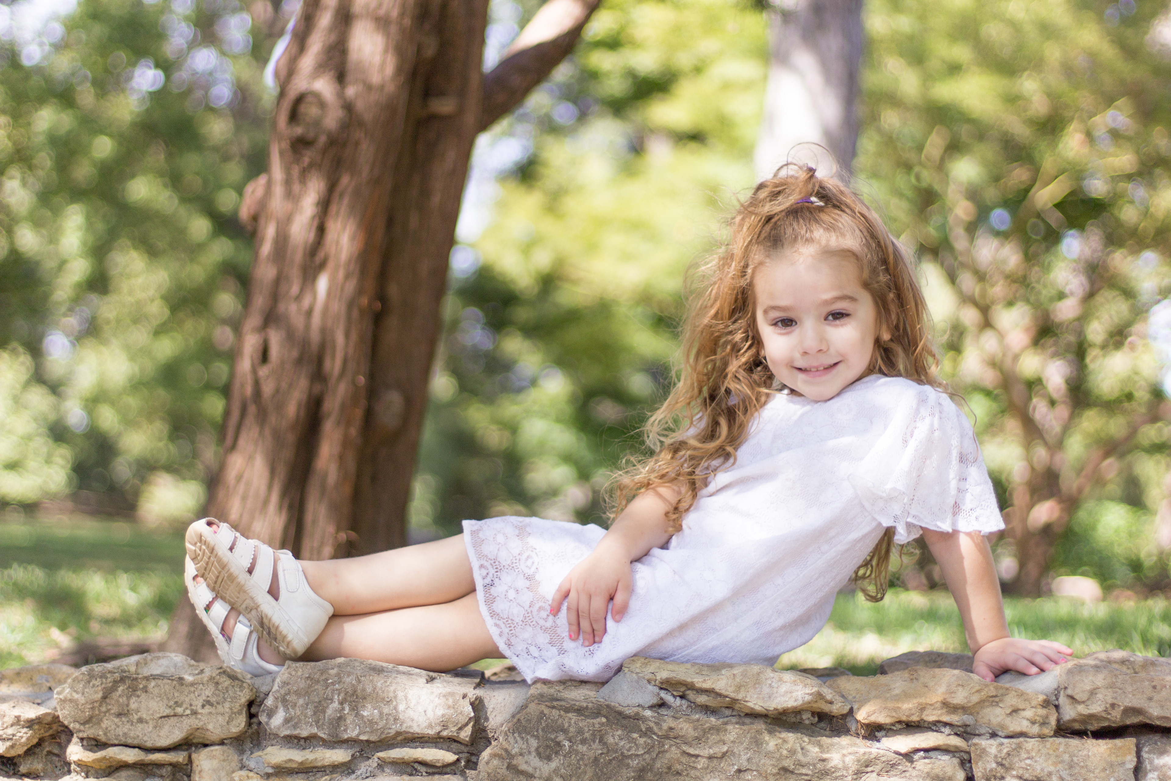 It was a lovely day at Loose Park in Kansas City. I met up with Kristuana, Kyle and their four beautiful children a little after noon. The kids loved tossing rocks into the pond and just having a little down time to play before we got busy taking group photos. Each of the boys took turns jumping off the rock wall to their Dad, making for some cool action shots. Kristiauna's daughter, Cicily, was more than a natural in front of the lens. She posed without any hesitation and made my job a breeze! She was so cute and asked to take my picture multiple times. At the end of the shoot, I let her take a couple pictures with my camera.