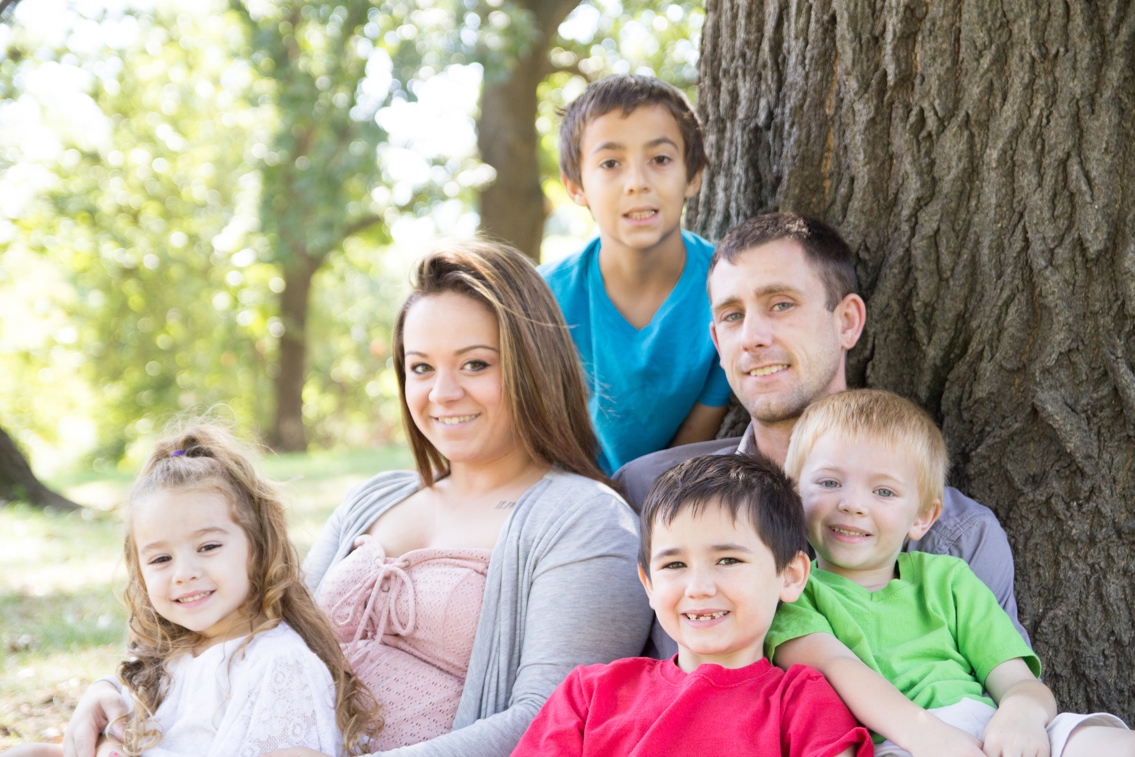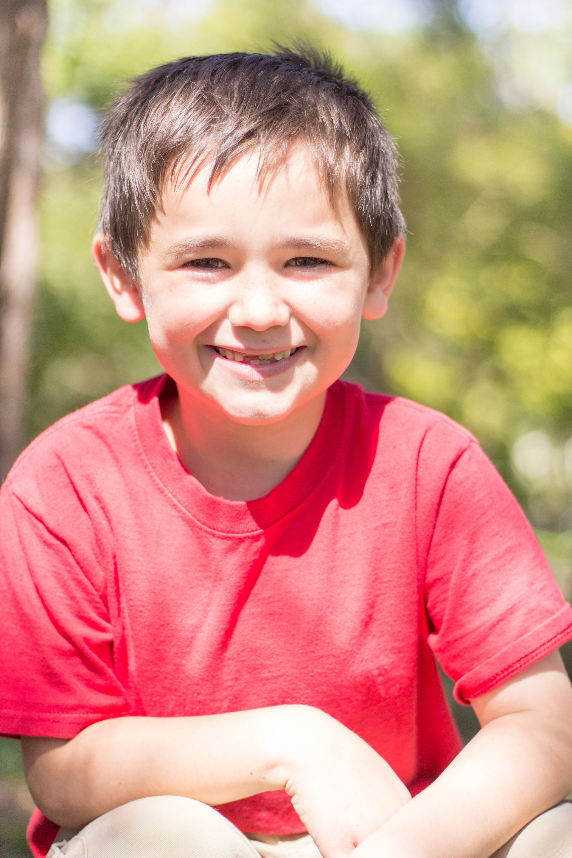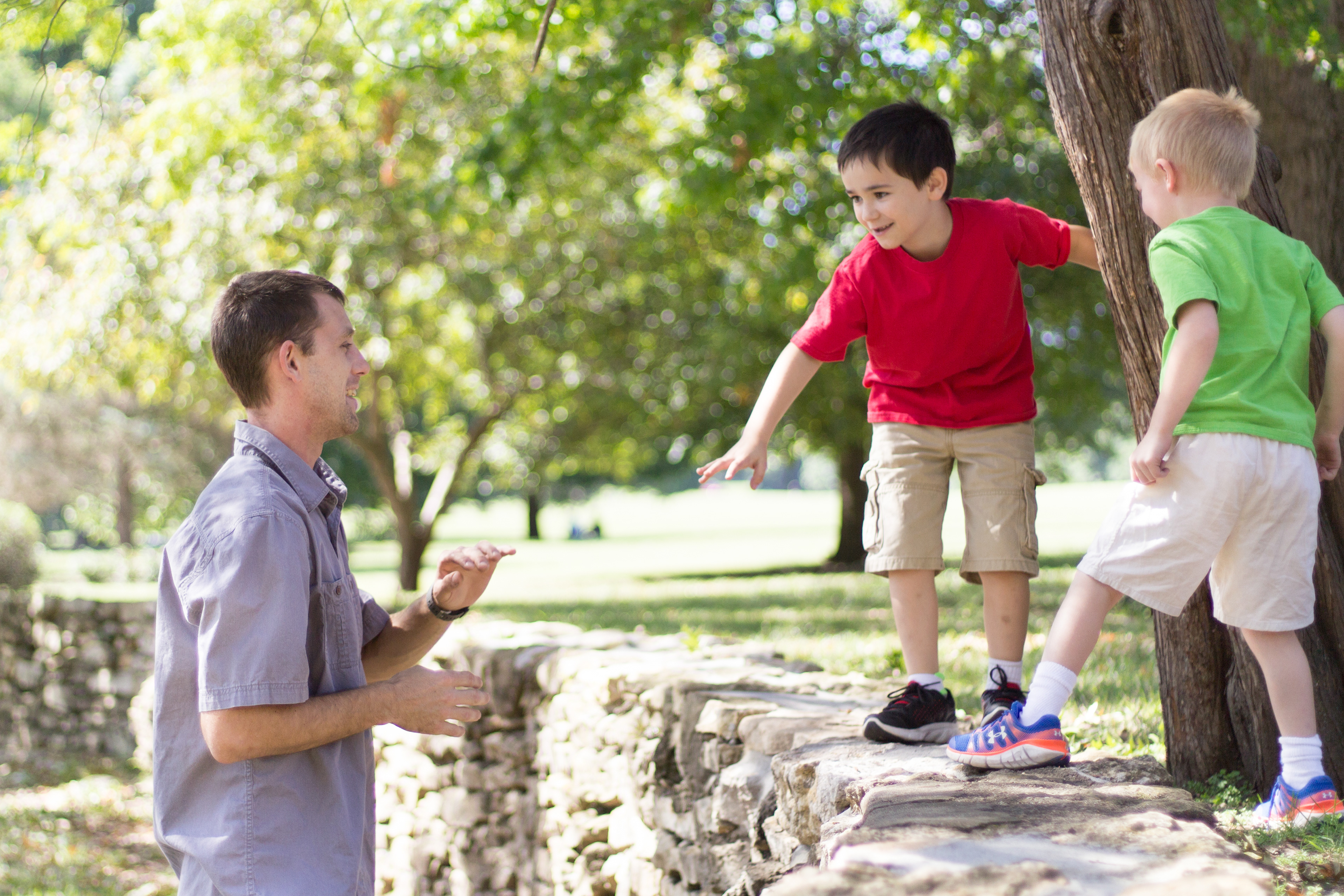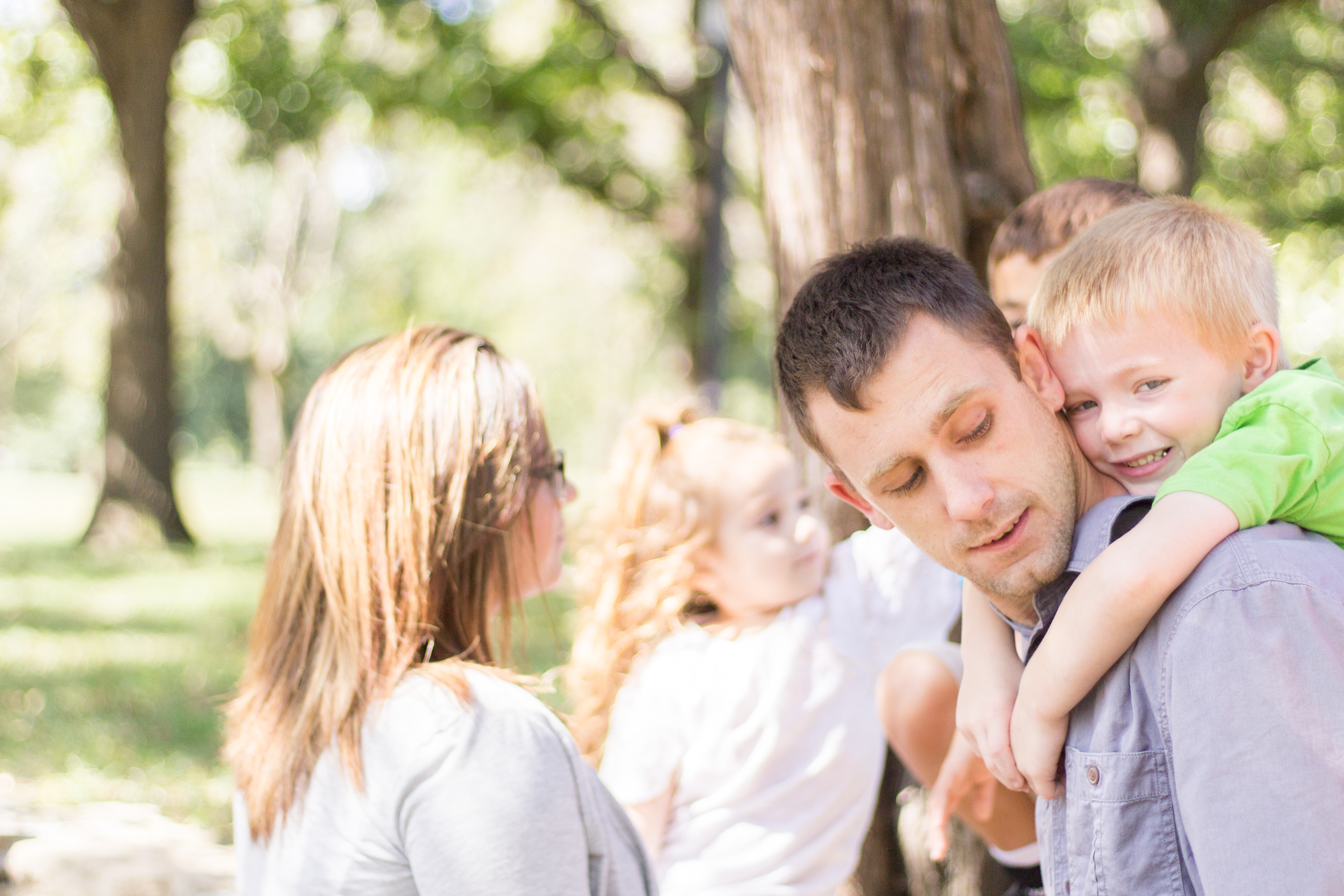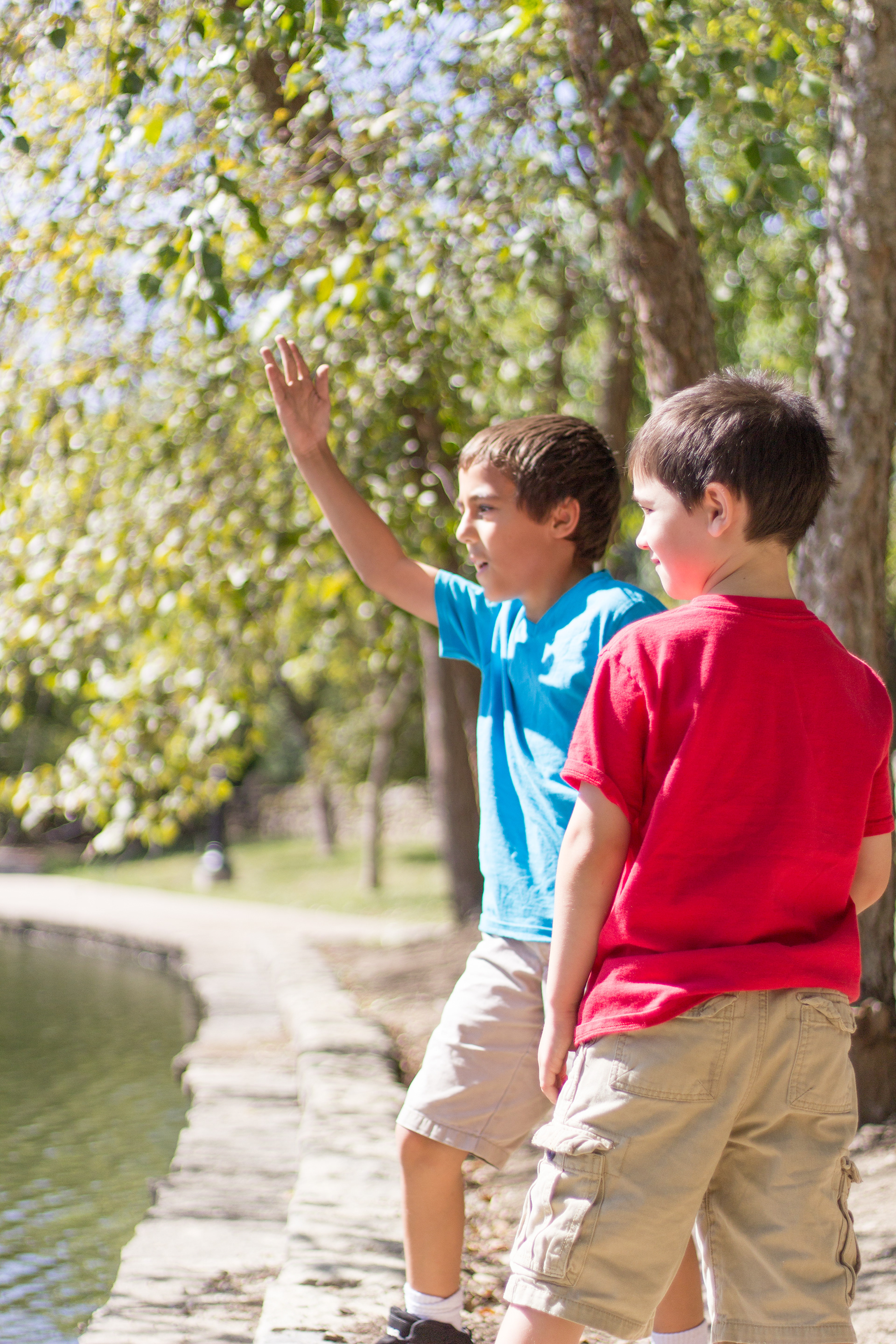 It was a lovely day at Loose Park in Kansas City. I met up with Kristuana, Kyle and their four beautiful children a little after noon. The kids loved tossing rocks into the pond and just having a little down time to play before we got busy taking group photos. Each of the boys took turns jumping off the rock wall to their Dad, making for some cool action shots. Kristiauna's daughter, Cicily, was more than a natural in front of the lens. She posed without any hesitation and made my job a breeze! She was so cute and asked to take my picture multiple times. At the end of the shoot, I let her take a couple pictures with my camera.