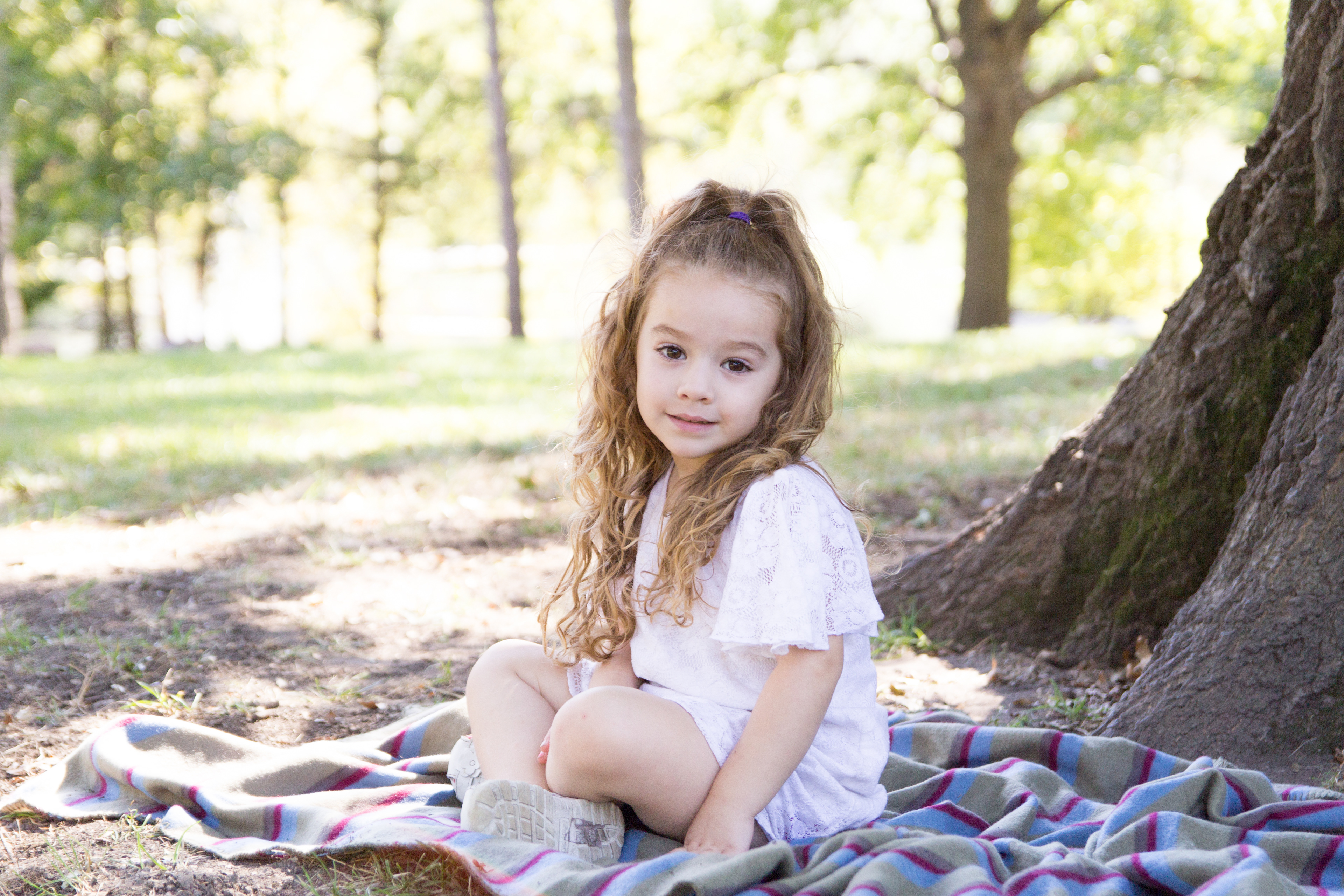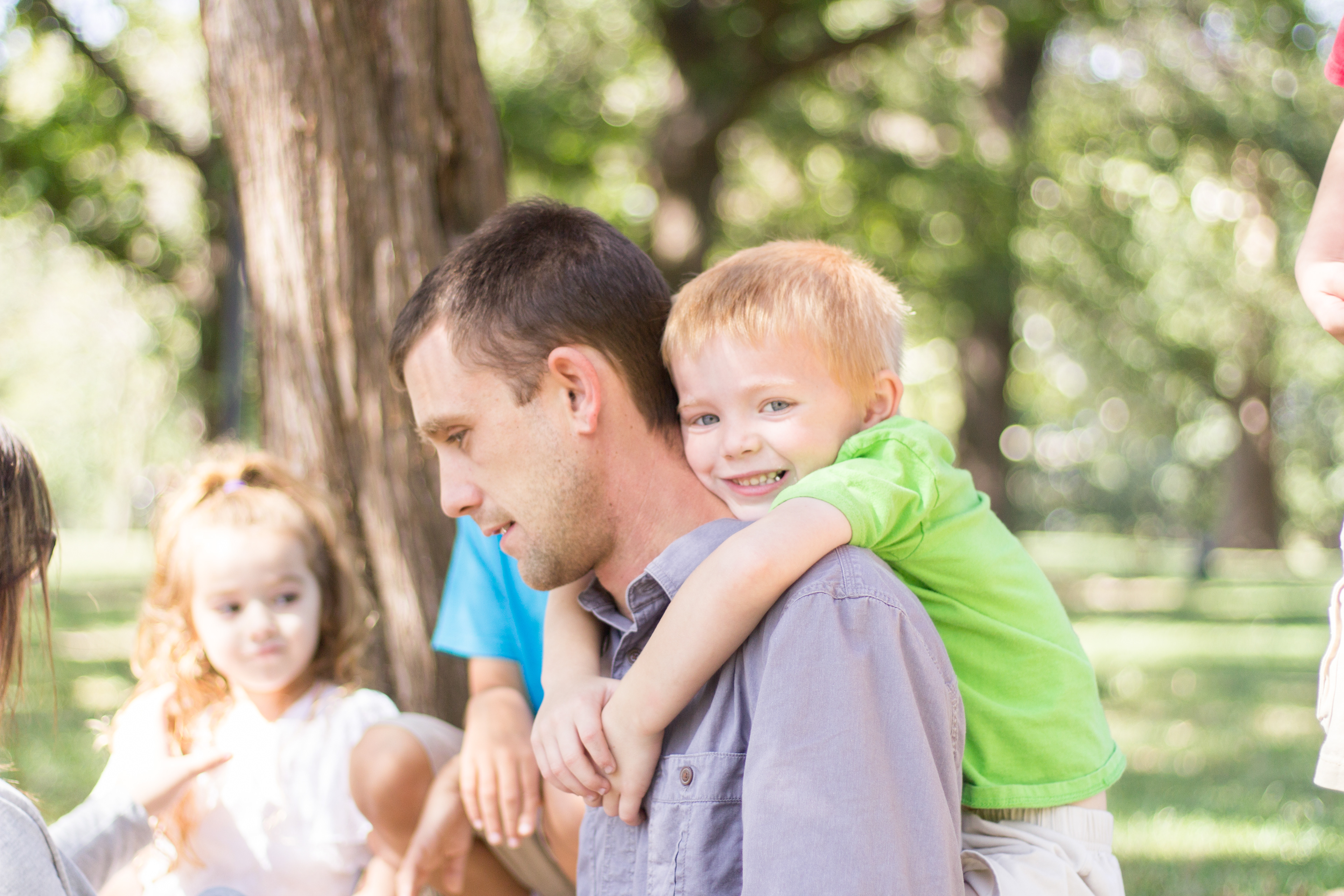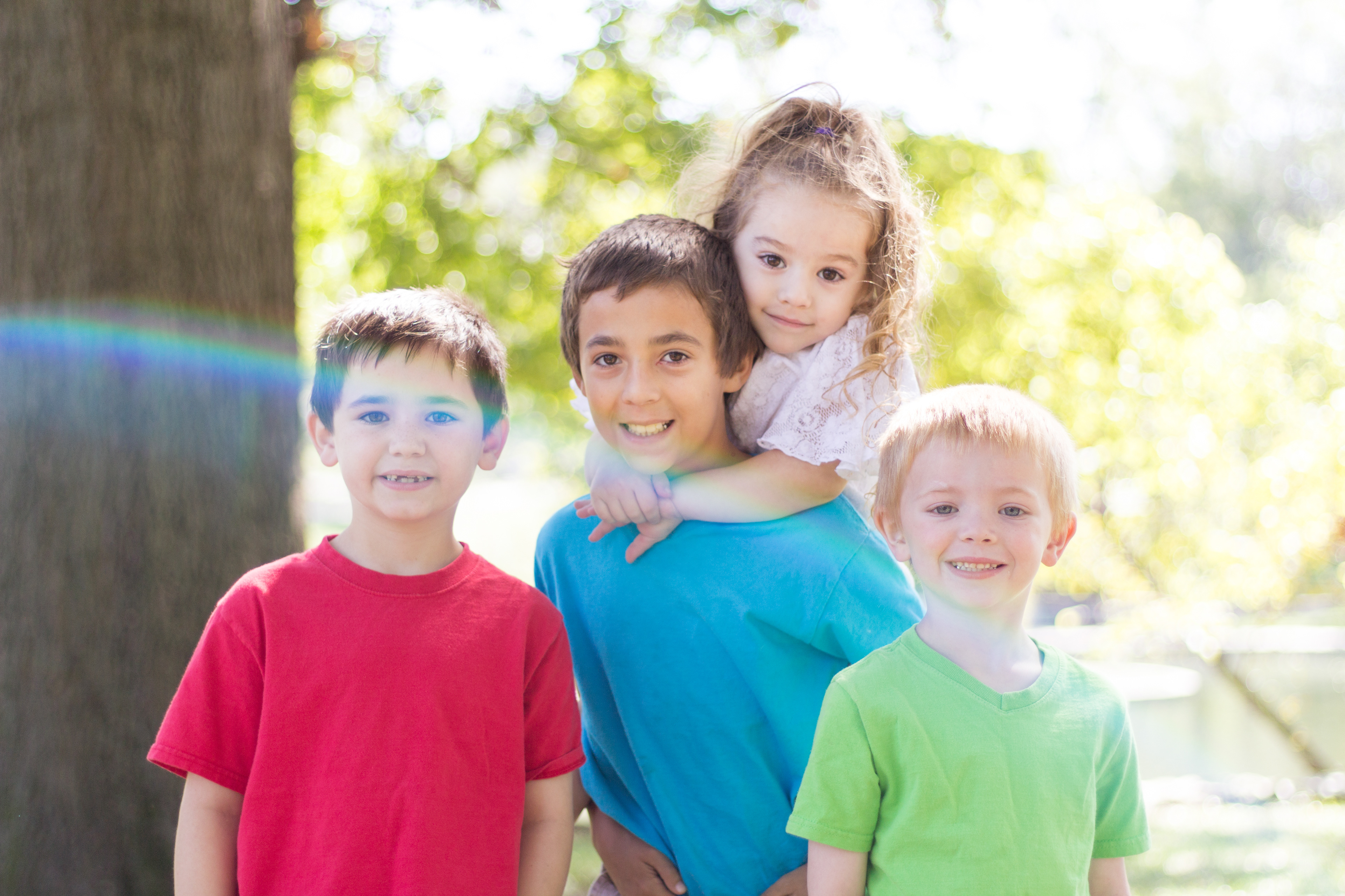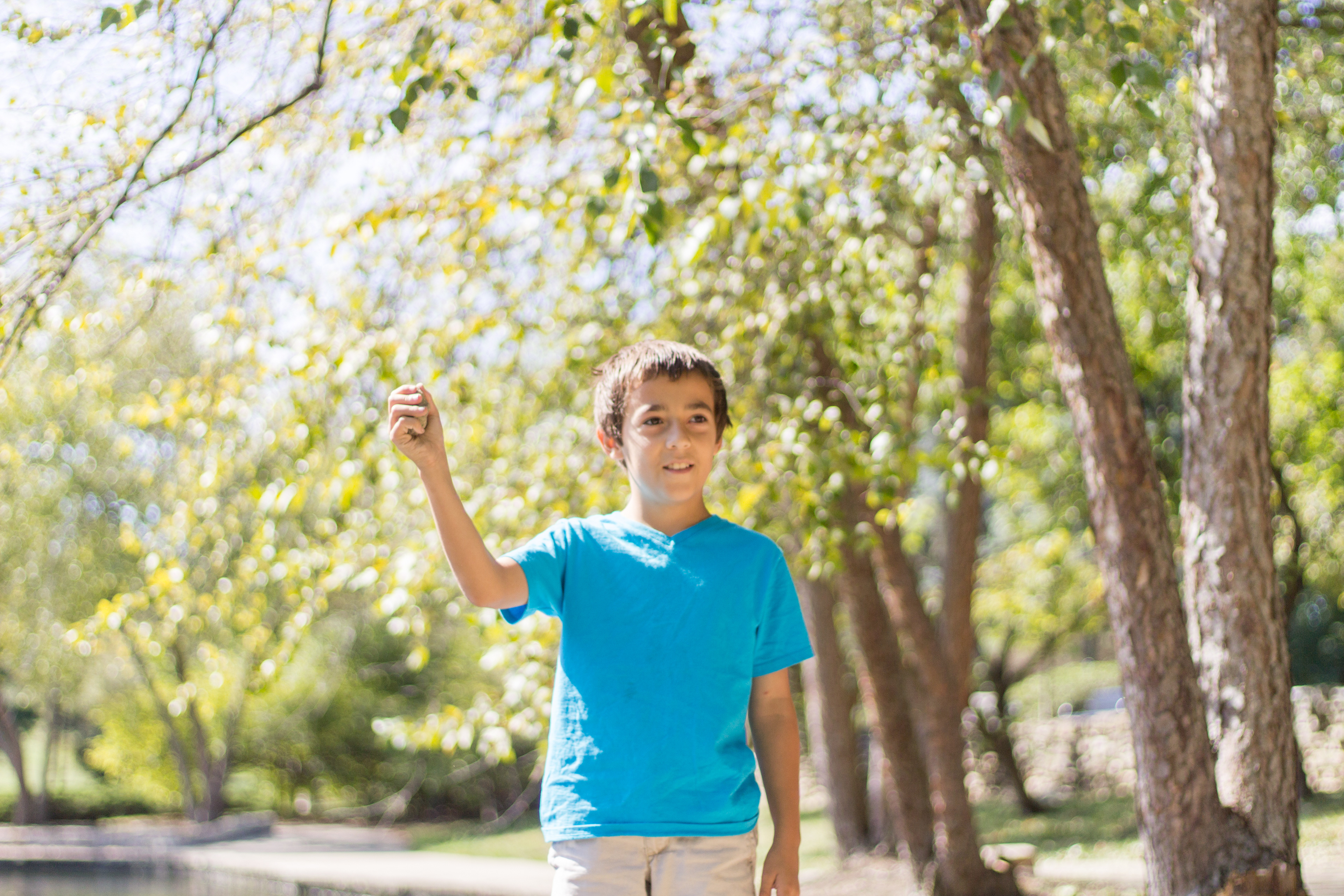 It was a lovely day at Loose Park in Kansas City. I met up with Kristuana, Kyle and their four beautiful children a little after noon. The kids loved tossing rocks into the pond and just having a little down time to play before we got busy taking group photos. Each of the boys took turns jumping off the rock wall to their Dad, making for some cool action shots. Kristiauna's daughter, Cicily, was more than a natural in front of the lens. She posed without any hesitation and made my job a breeze! She was so cute and asked to take my picture multiple times. At the end of the shoot, I let her take a couple pictures with my camera.