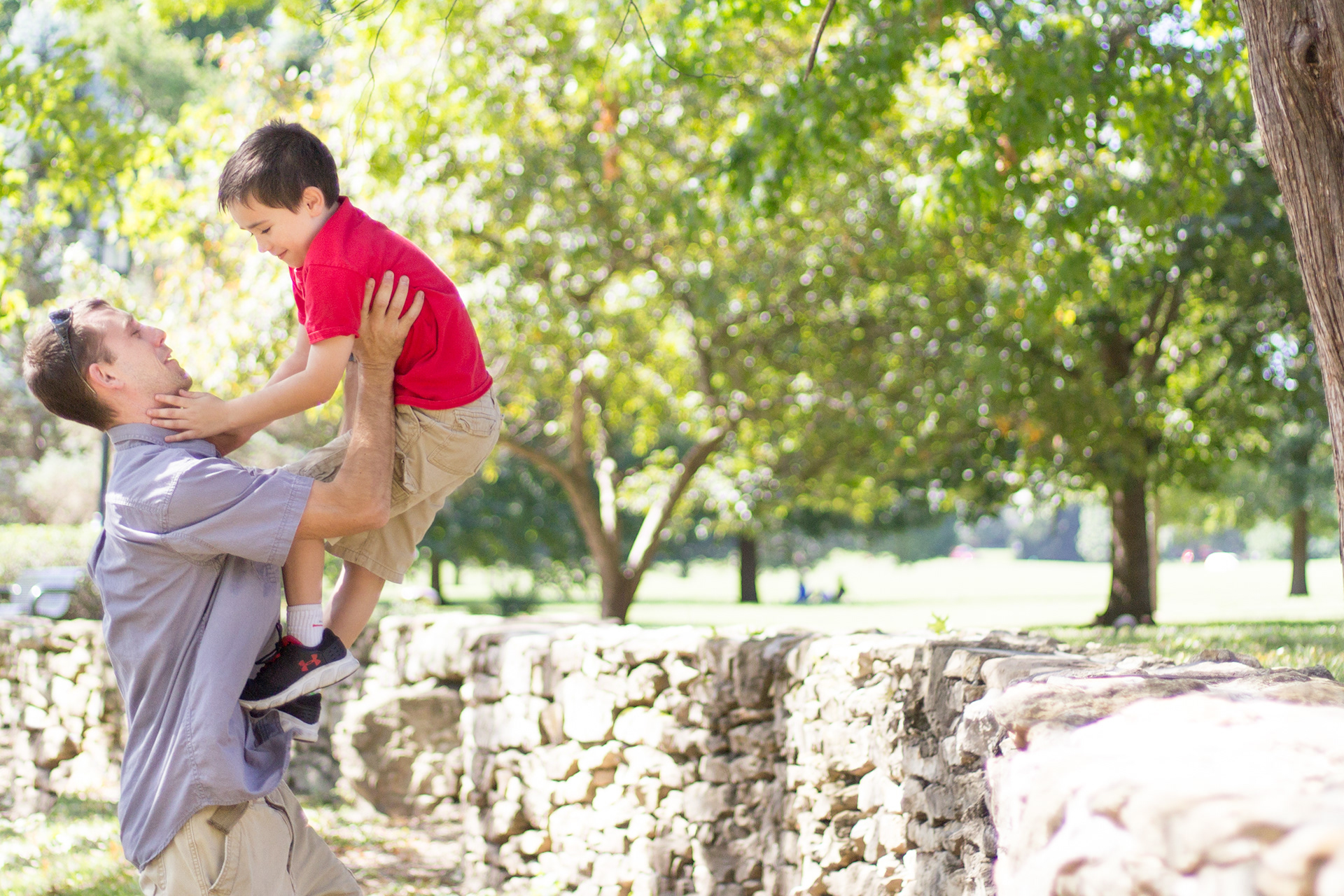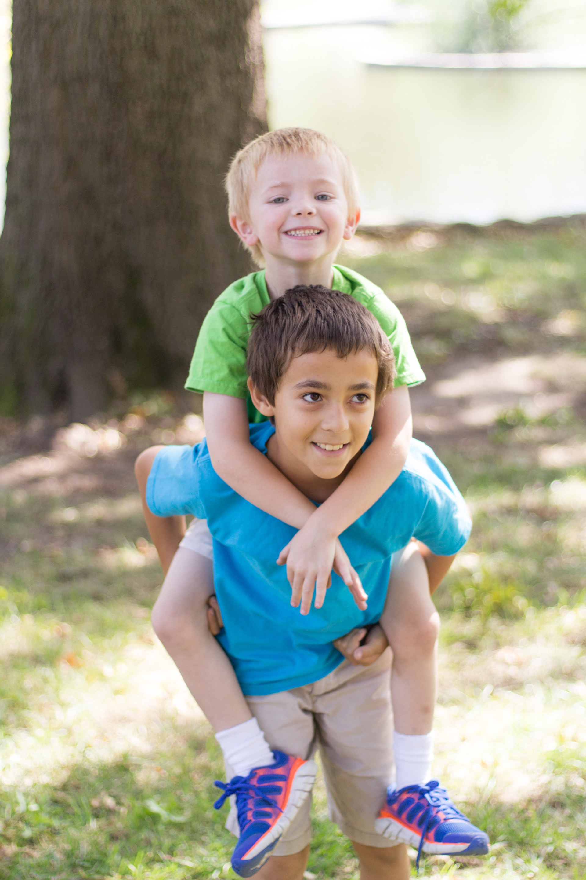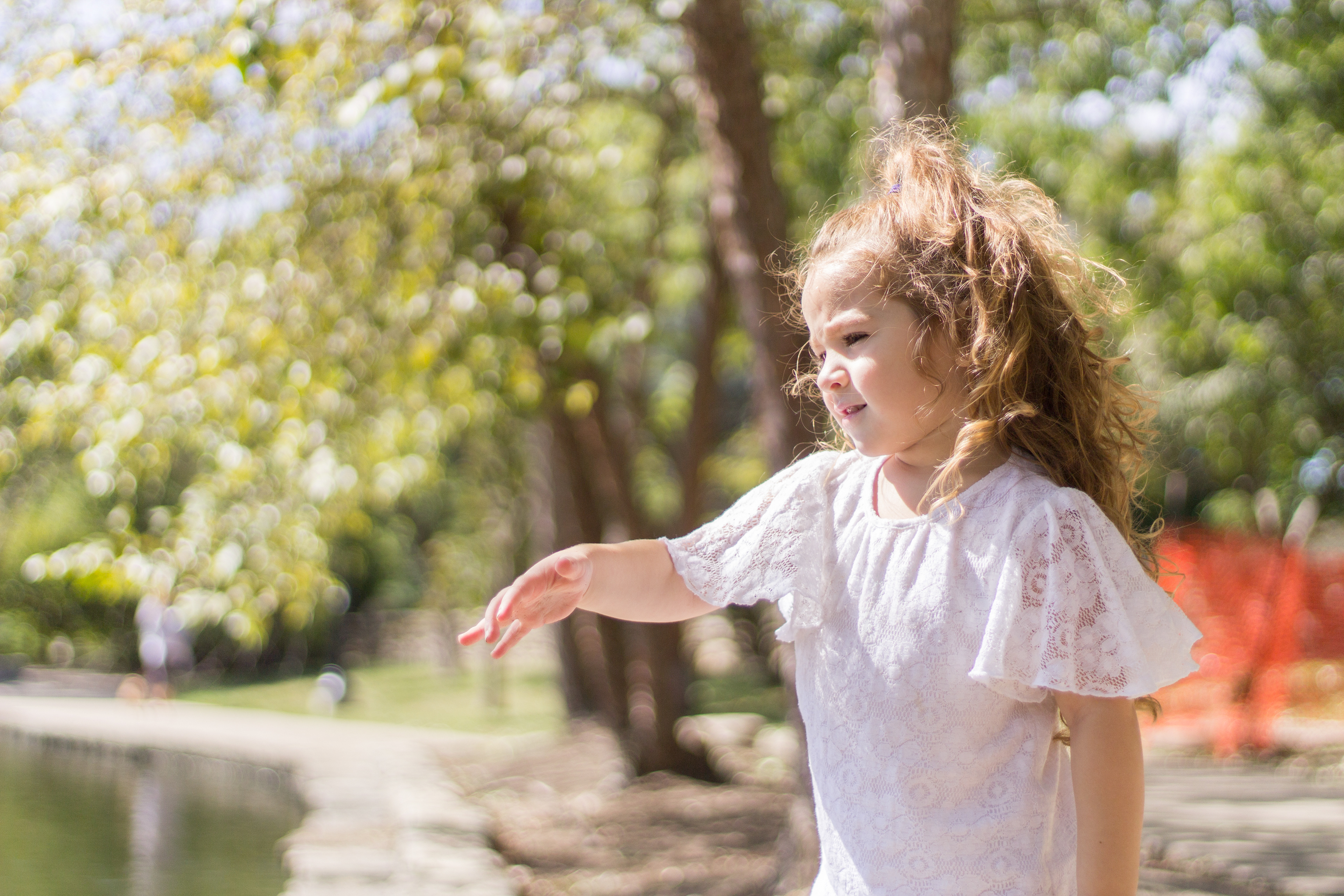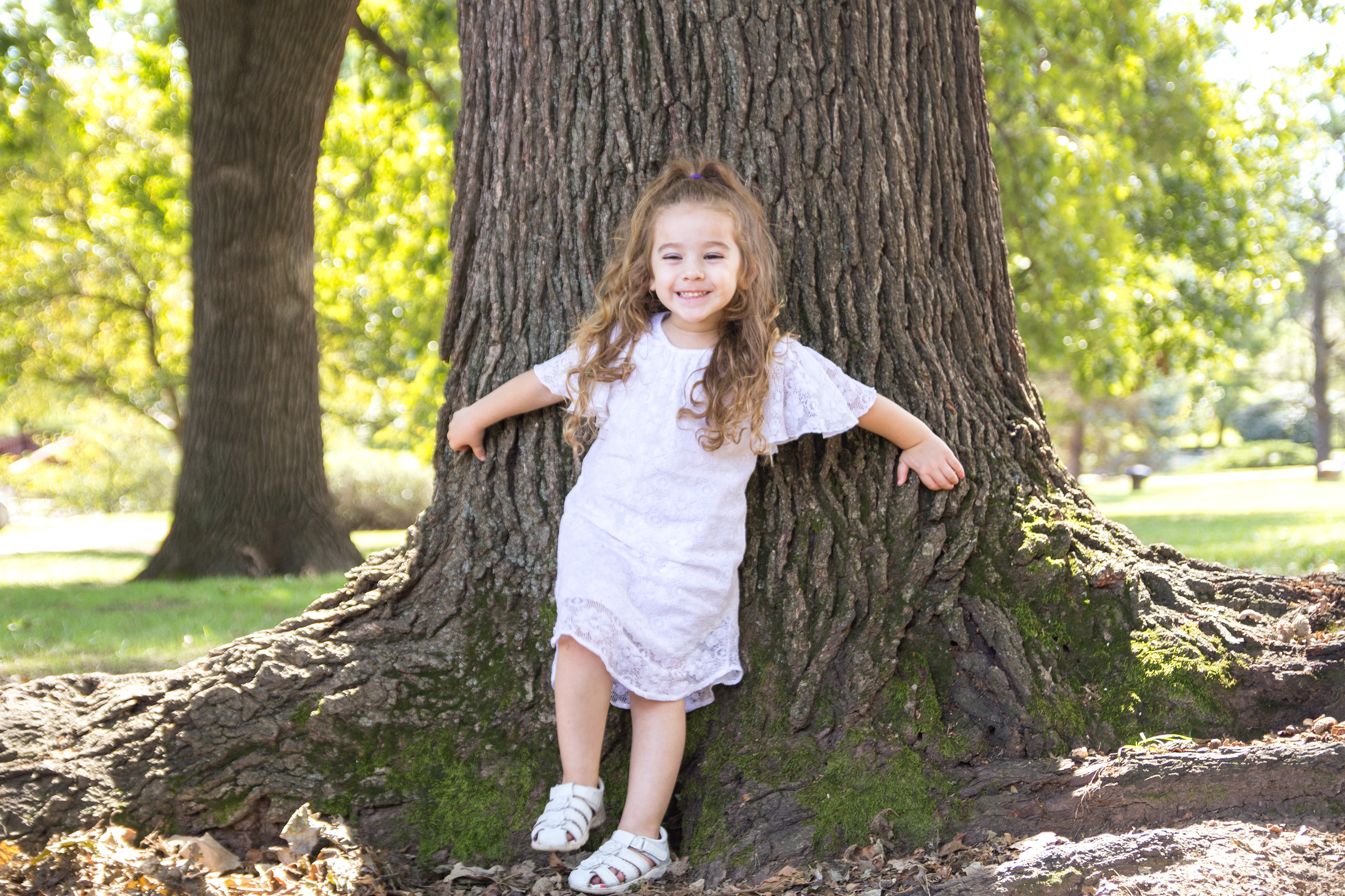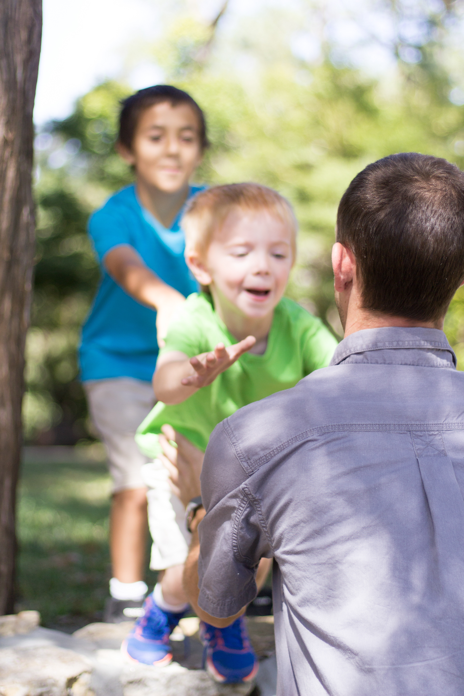 It was a lovely day at Loose Park in Kansas City. I met up with Kristuana, Kyle and their four beautiful children a little after noon. The kids loved tossing rocks into the pond and just having a little down time to play before we got busy taking group photos. Each of the boys took turns jumping off the rock wall to their Dad, making for some cool action shots. Kristiauna's daughter, Cicily, was more than a natural in front of the lens. She posed without any hesitation and made my job a breeze! She was so cute and asked to take my picture multiple times. At the end of the shoot, I let her take a couple pictures with my camera.